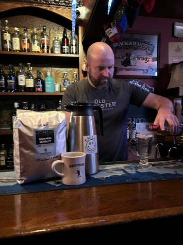 James Doyleย makes Spanish Coffees for his guests. Happyrock Coffee is served at his restaurant the Highland Stillhouse Pub. Happyrock is used to make coffee-based cocktails as well as served by the cup.